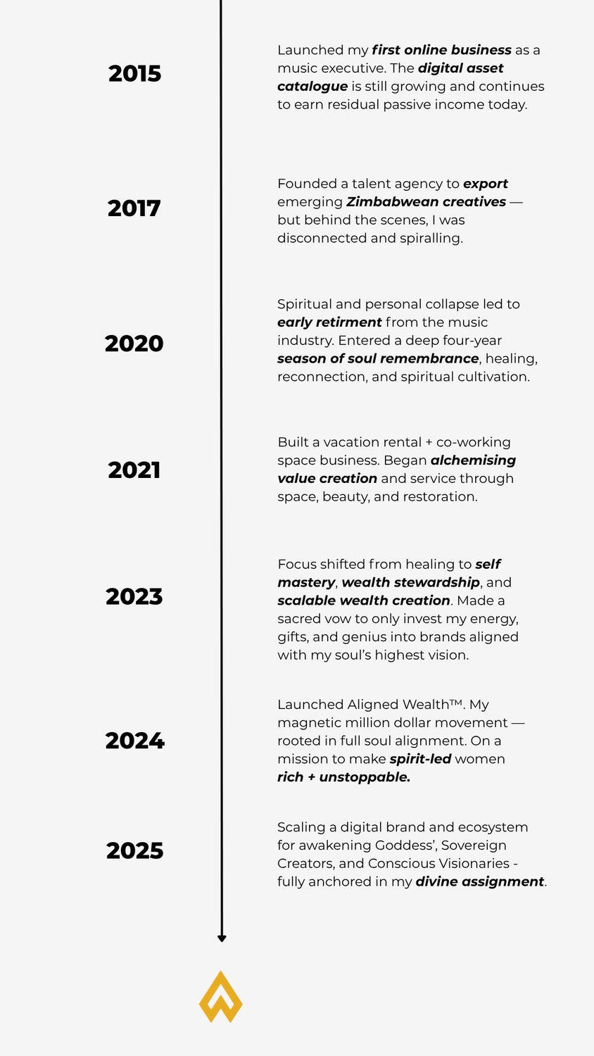 Now, through Aligned Wealth, I guide you to do the same: (i) Stop chasing. (ii) Create from alignment.