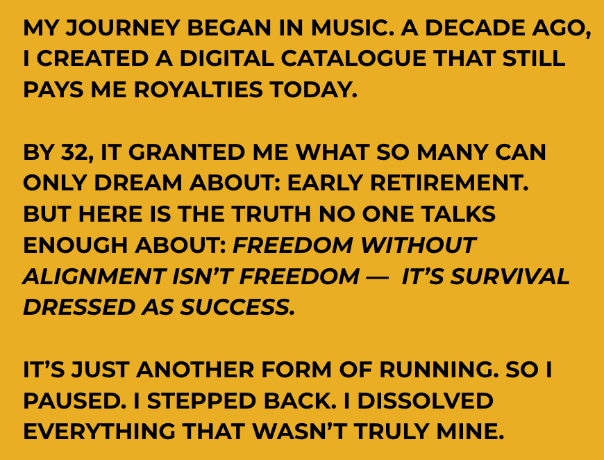 I’ve learned that wealth and freedom aren’t things you chase. They are realities you create — when spirit leads, and you own what you build.