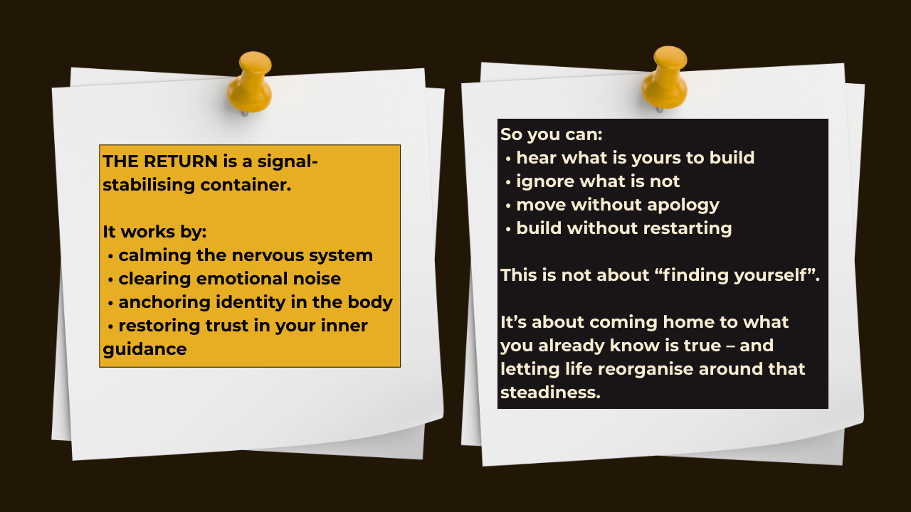 If you already know what you’re here to build, THE RETURN stabilises you so you can build it cleanly.