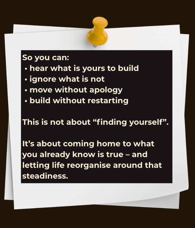 Stop restarting. Stop spiralling between ideas. Stop building without conviction. This is the stabilisation that allows your next step to finally land – cleanly.